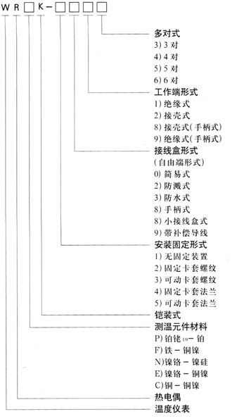● 鎧裝熱電偶的型號表示